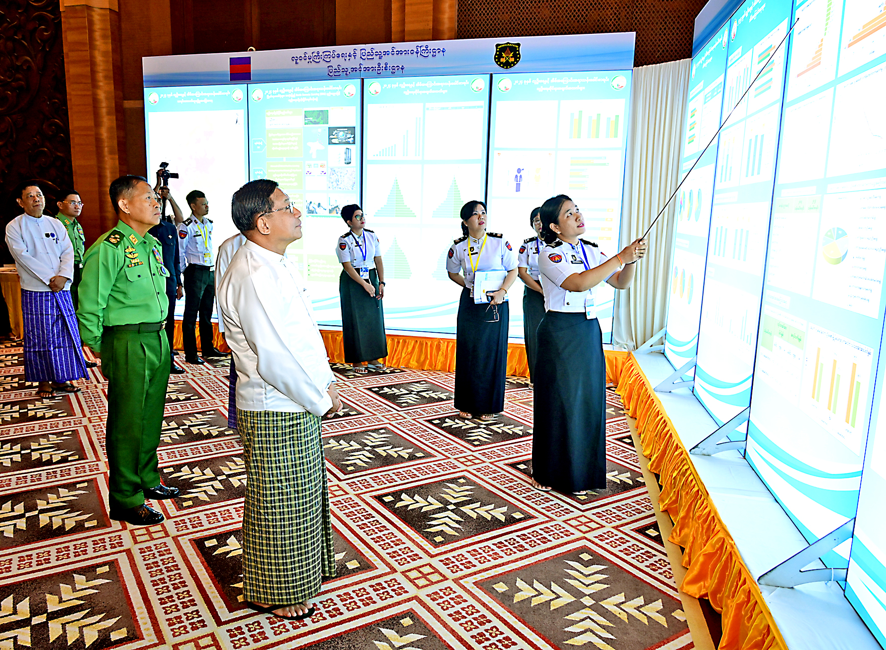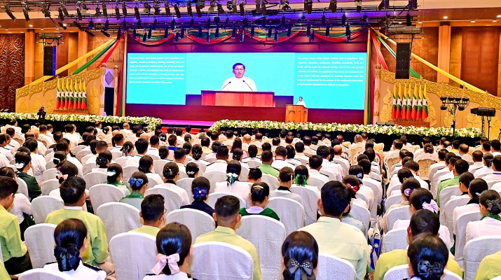 Also, present at the ceremony were Commission Vice-Chairman Vice-Senior General Soe Win, Commission member and Prime Minister U Nyo Saw, Commission Secretary and Joint Executive Chief General Ye Win Oo, commission members, Union ministers, Union-level dignitaries, the Nay Pyi Taw Council Chairman, region and state chief ministers, senior military officers from the Office of the Commander-in-Chief, deputy ministers, officials from the foreign embassies and international organizations, chairmen and officials from the political parties and associations, State service personnel who participated in the enumeration of the 2024 population and household census process, departmental personnel, guests, students and officials.