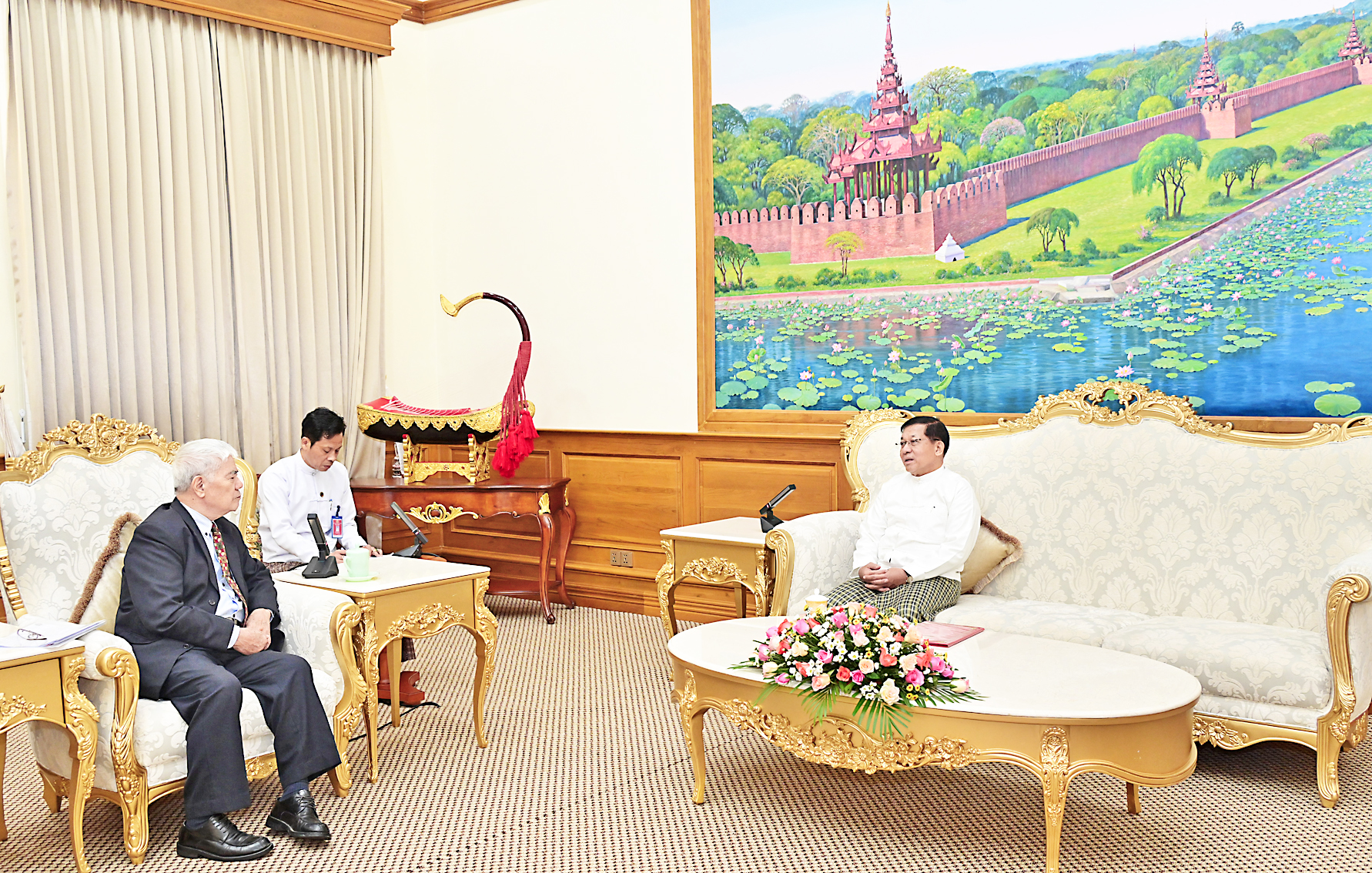 Also present at the call together with the Senior General were SSPC Secretary Joint Executive Chief General Ye Win Oo, Union Minister for Transport and Communication U Mya Tun Oo, and Deputy Minister for Foreign Affairs U Ko Ko Kyaw. The Vietnam-Myanmar Friendship Association Chair was accompanied by members of the delegation.