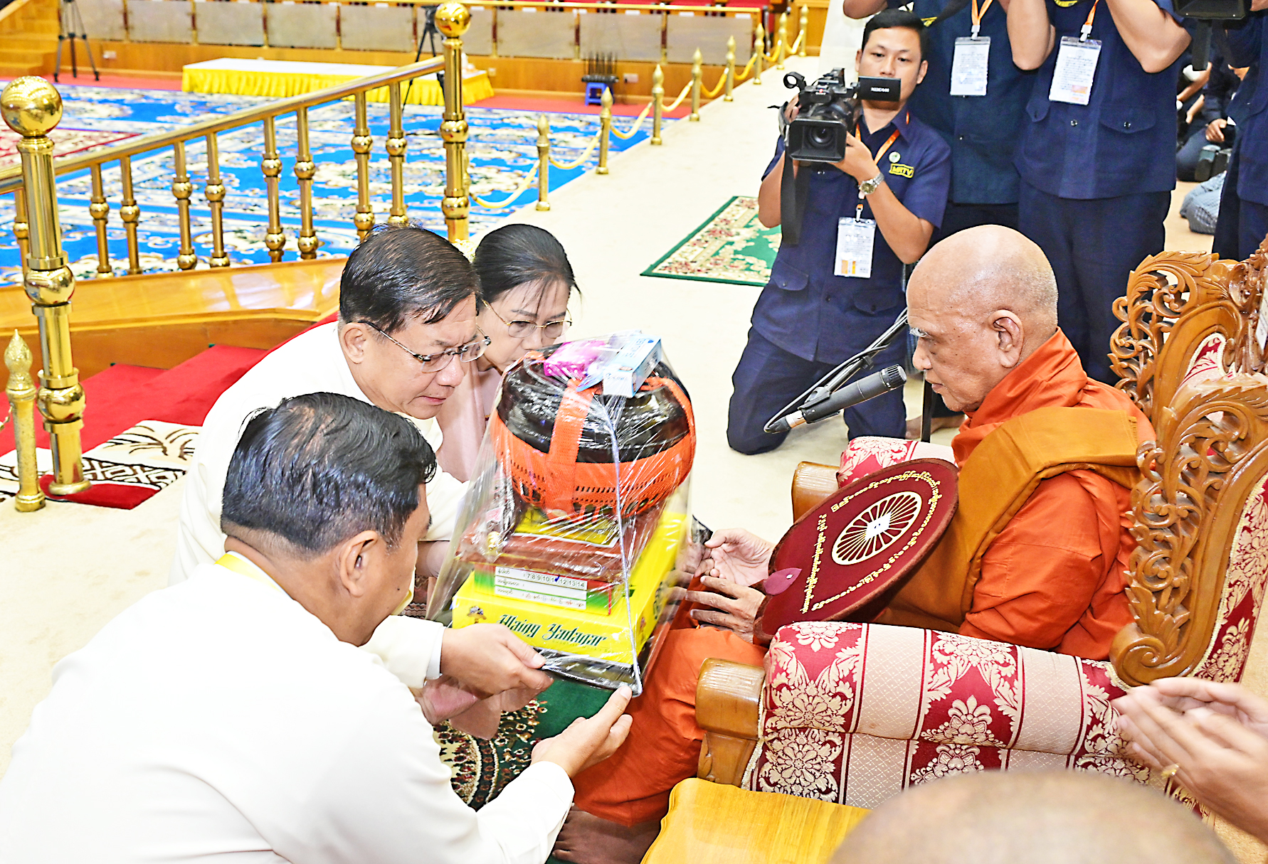 The Prime Minister and wife, the Executive Chief and wife, the Joint Executive Chief and wife, SSPC members and wives, union level dignitaries, union ministers, and senior military officers from the Office of the Commander-in-Chief presented kathina robes and offertories to Sayadaws re-spectively.