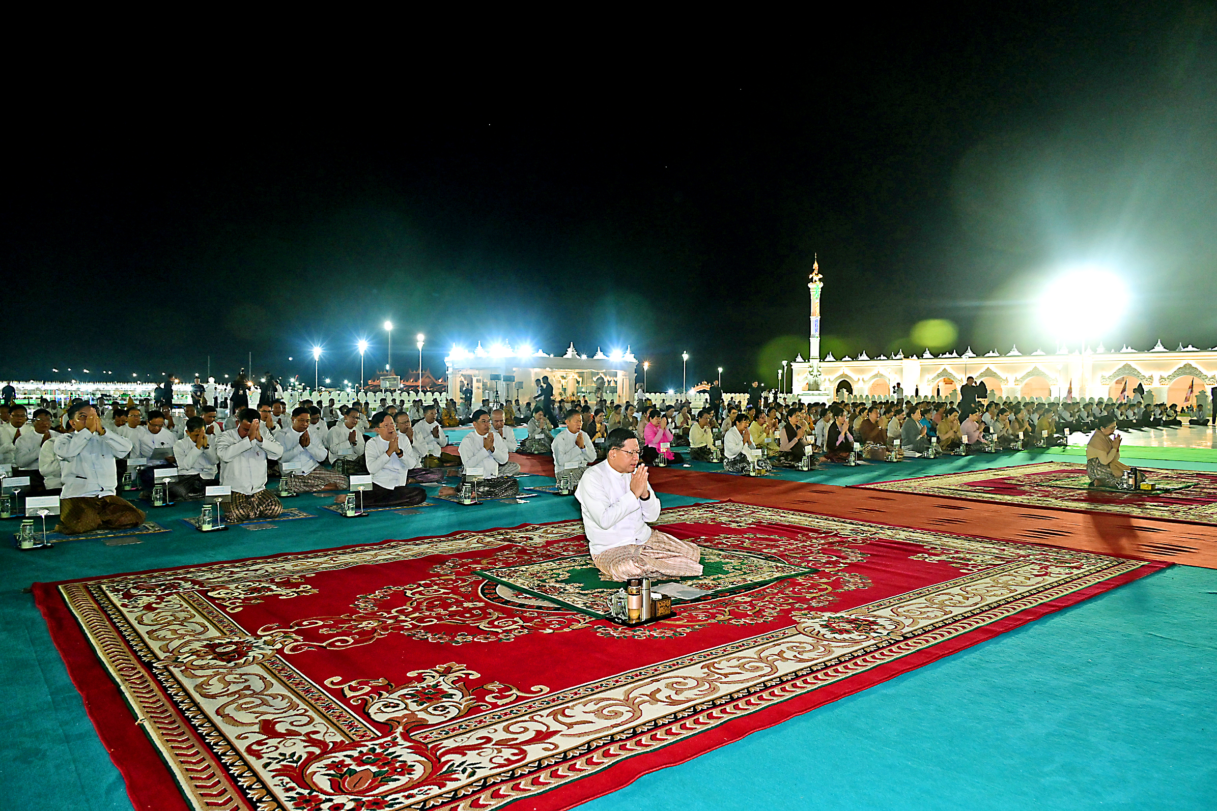 The ceremony was also attended by Daw Kyu Kyu Hla, the wife of the Senior General, Commission Vice Chairman Vice-Senior General Soe Win and his wife Daw Than Than Nwe, Commission member and Prime Minister U Nyo Saw and his wife, Commission member and Executive Chief U Aung Lin Dway and his wife, Commission Secretary Joint Executive Chief General Ye Win Oo and his wife, commission members and their wives, Union-level dignitaries, Union ministers and their wives, the Nay Pyi Taw Council Chairman, senior military officers from the Office of the Commander-in-Chief and their wives, the commander of Nay Pyi Taw Command, officials and religious associations.