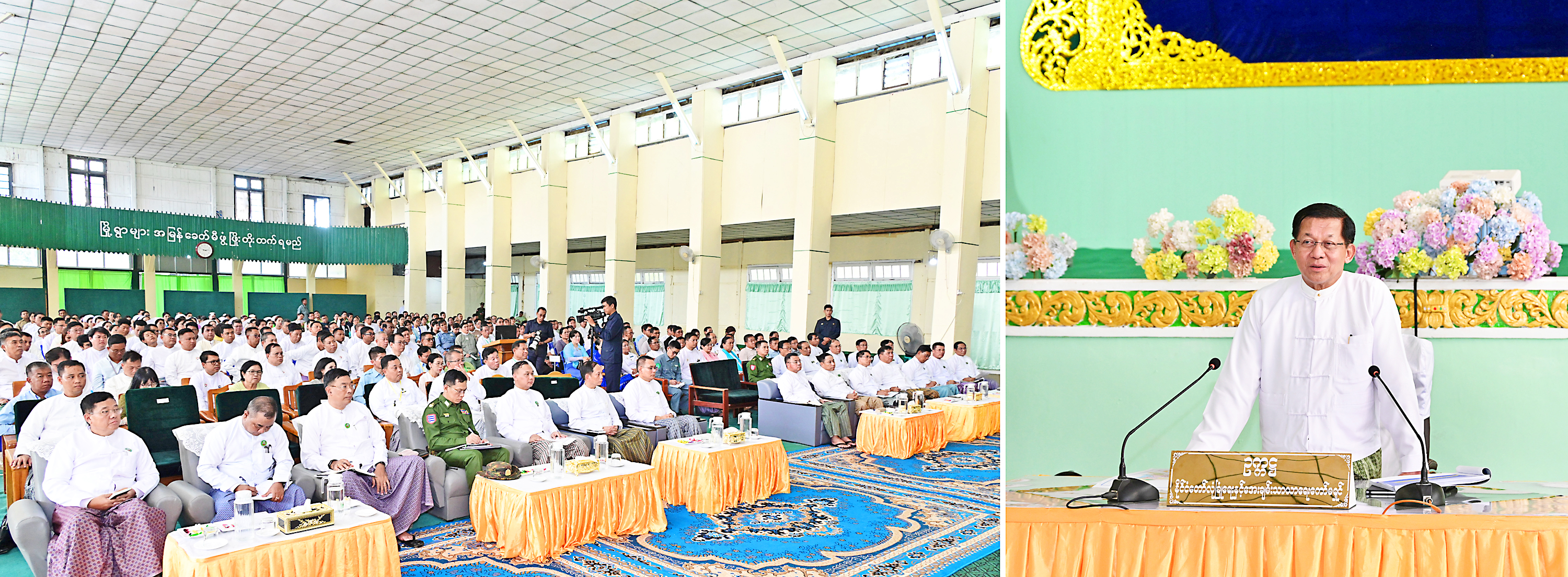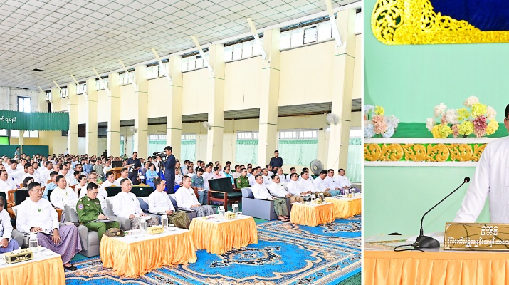Acting President of the Republic of the Union of Myanmar, Chairman of State Security and Peace Commission, Senior General Min Aung Hlaing met district and township level departmental personnel and local elders from Maubin District, Ayeyawady Region at Toeshwewa Hall this afternoon and discussed regional development.