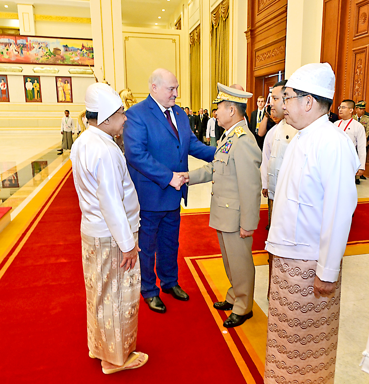 Afterward, Acting President of the Republic of the Union of Myanmar, Chairman of State Security and Peace Commission, Senior General Min Aung Hlaing and President of the Republic of Belarus H.E. Mr. Aleksandr Lukashenko held a separate meeting at the Credentials Hall of the Presidential Palace.