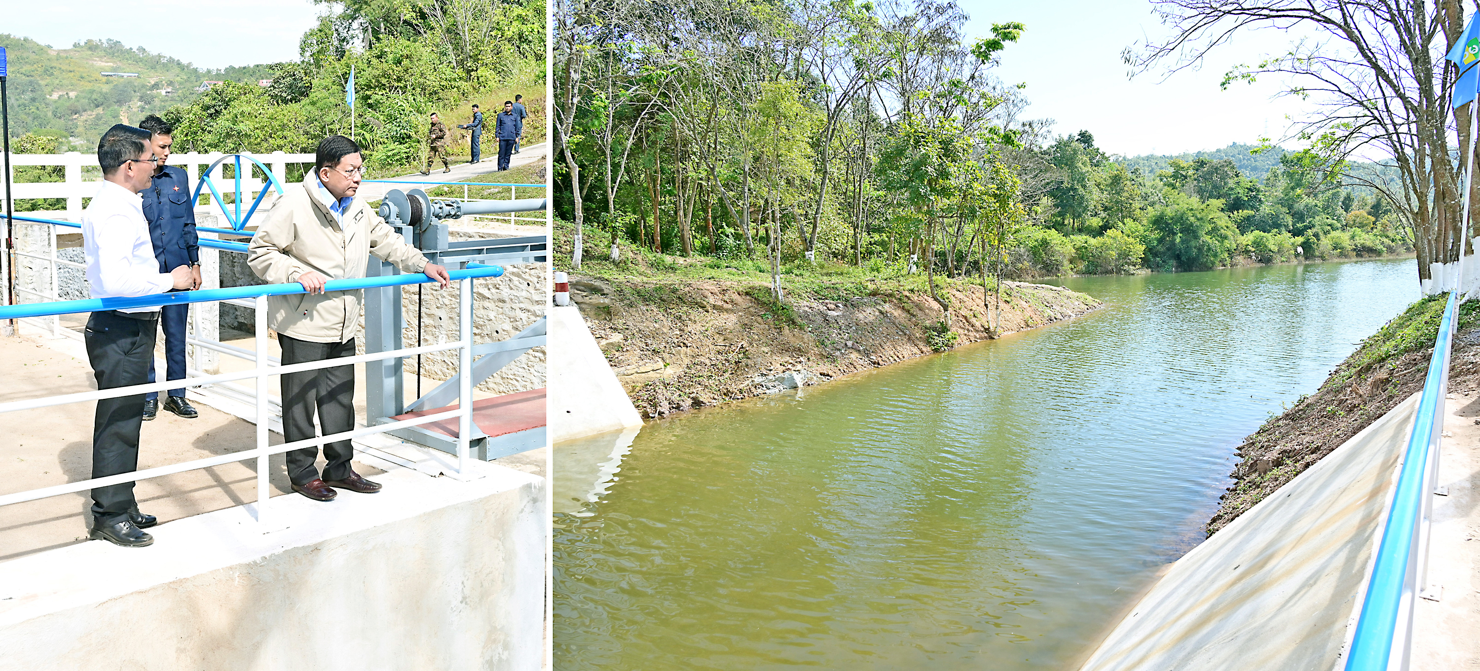 Hsinlan and Sitha spillway reservoirs were constructed under the instructions of the Senior General. Hsinlan spillway reservoir was by raised 2 feet, increasing the storage volume from 6,846 feet previously by 412 acre-feet and storing 112 million gallons of more water, which will be able to supplied to 15,000 people in PyinOoLwin, through the 18-inch steel water supply pipe. Similarly, the Sitha spillway reservoir was raised by three feet and its storage capacity increased by 267 acre-feet or 72 million gallons of water from 3,370 acre-feet previously. As a result, water supply to 10,000 more people, contributing a lot to PyinOoLwin area.
