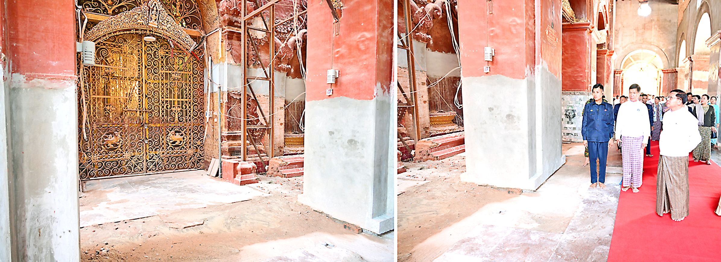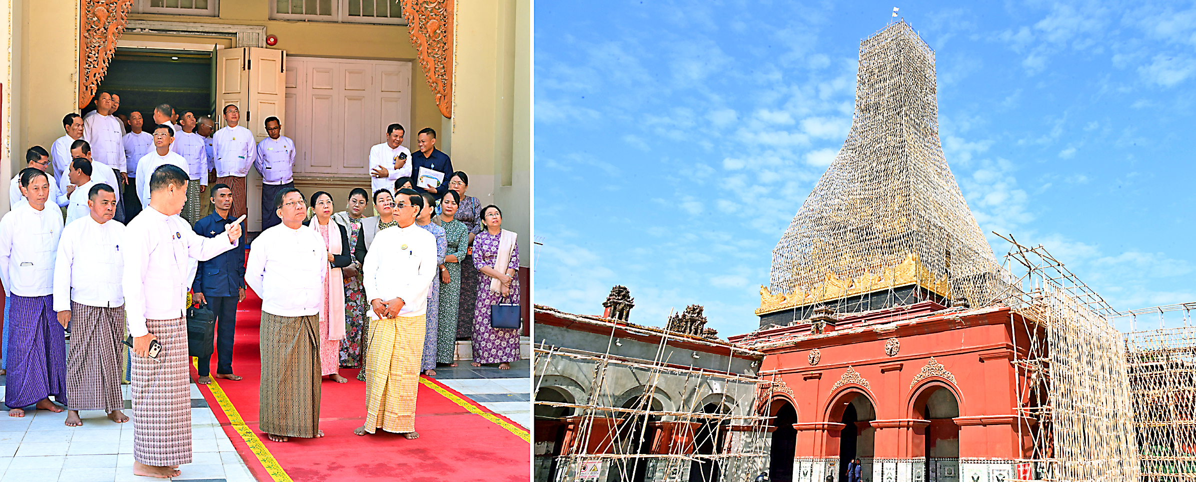 Afterward, the Senior General and party rounded the pagoda clockwise and inspected the renovation of damaged religious buildings caused by the Mandalay earthquake in their original architecture before giving instructions on durability and systematization of renovated and newly constructed buildings and other requirements.