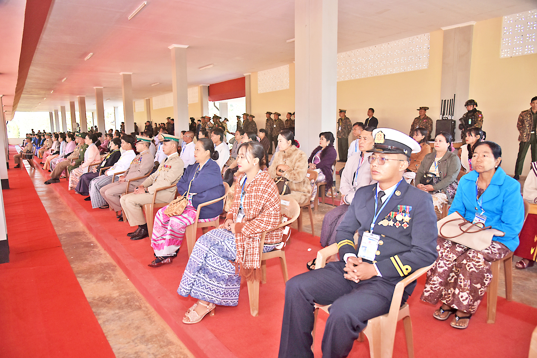 Also present at the ceremony together with the Senior Gene-ral were wife Daw Kyu Kyu Hla, Commander-in-Chief (Navy) Admiral Zeya Kyawhtin Htein Win and wife, Commander-in-Chief (Air) General Zeya Kyawhtin Sithu Tun Aung and wife, senior military officers from the Office of the Commander-in-Chief and wives, Union level dignitaries, Union ministers and wives, the Mandalay Region chief minister, military command command-ers, the DSTA commandant, officials from PyinOoLwin Station, families and relatives of cadets and guests.