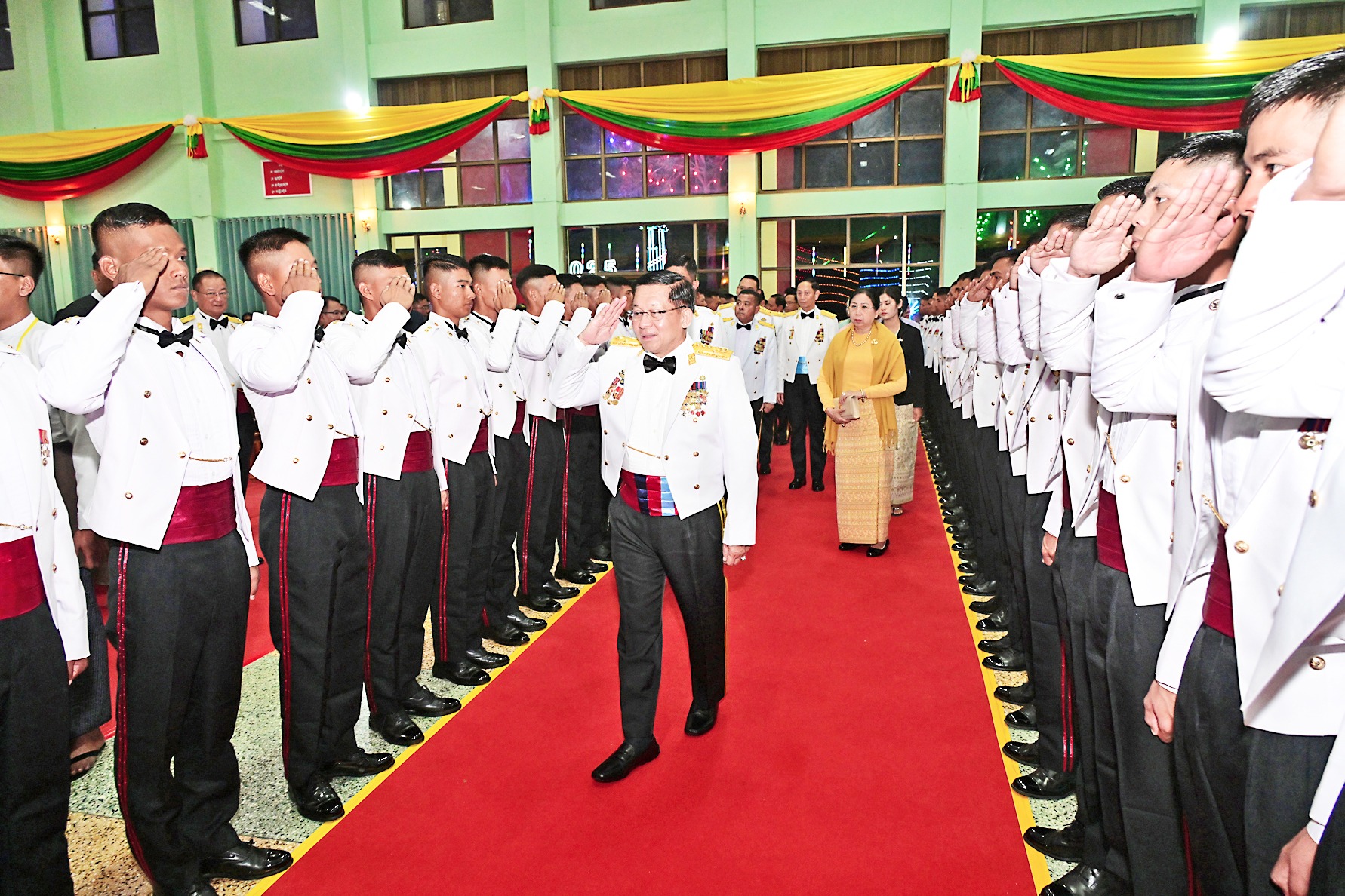 The graduation dinner was also attended by the Senior General’s wife, Daw Kyu Kyu Hla, along with Commander-in-Chief (Navy) Admiral Htein Win and his wife, Commander-in-Chief (Air) General Tun Aung and his wife, senior military officers from the Office of the Comman-der-in-Chief and their wives, union-level officials and union ministers and their wives, the Chief Minister of Mandalay Region, regional military com-manders, the Commandant of DSTA, officials from the PyinOoLwin Station, parents and relatives of the graduat-ing officer cadets, and invited guests.