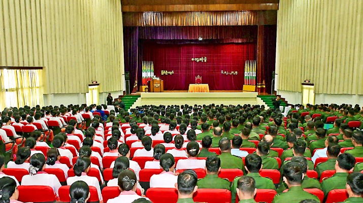 Regarding the promotion of education for Tatmadaw personnel, he stated that education isn’t complete merely through formal instruction; it must be continuously pursued by reading and studying informational and artistic books and periodicals to gain knowledge and wisdom, followed by memorizing, practically applying, and sharing this knowledge with others, as doing so will greatly benefit one’s life. He also stated that it’s important to work to-ward enhancing the education of their children, noting that Tatmadaw has continuously encouraged and promoted the education of the children of Tatmadaw families across different eras. He mentioned that outstanding students from Tatmadaw families are sent on study tours abroad, and other awards and support are also provided; therefore, he urged parents to encourage and support the advancement of their children’s education. He concluded by instructing all officers, soldiers, and family members to live in unity, fulfill the duties assigned by the State and Tatmadaw, and continue to strive to be reliable resources for the State and Tatmadaw by contributing and supporting the interest from their respective capabilities.