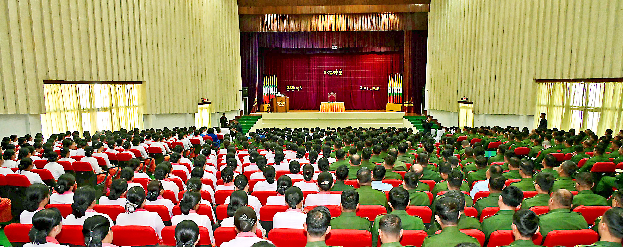 He stated that Tatmadaw has had to participate in the leading role of national politics throughout various historical periods, and due to both historical reasons and current circumstances, Tatmadaw will need to continue its participation in the political leading role for the time being. Tatmadaw’s participation in the Hluttaw can be progressively reduced only when democracy flourishes in the country and ethnic armed organizations no longer exist; given that Tatmadaw is currently involved in the leading role of national politics, it’s necessary for operations to be conducted correctly and systematically.