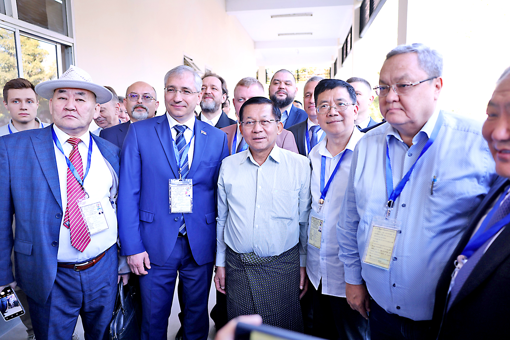 The Senior General cordially greeted members of the observer teams from the Russian Federation, the People’s Re-public of China, Kazakhstan and Belarus, who were observing the voting activities of the voters at Polling Station 2, Ywakauk Ward, Pyinmana Town-ship, and posed for documentary photos with them.