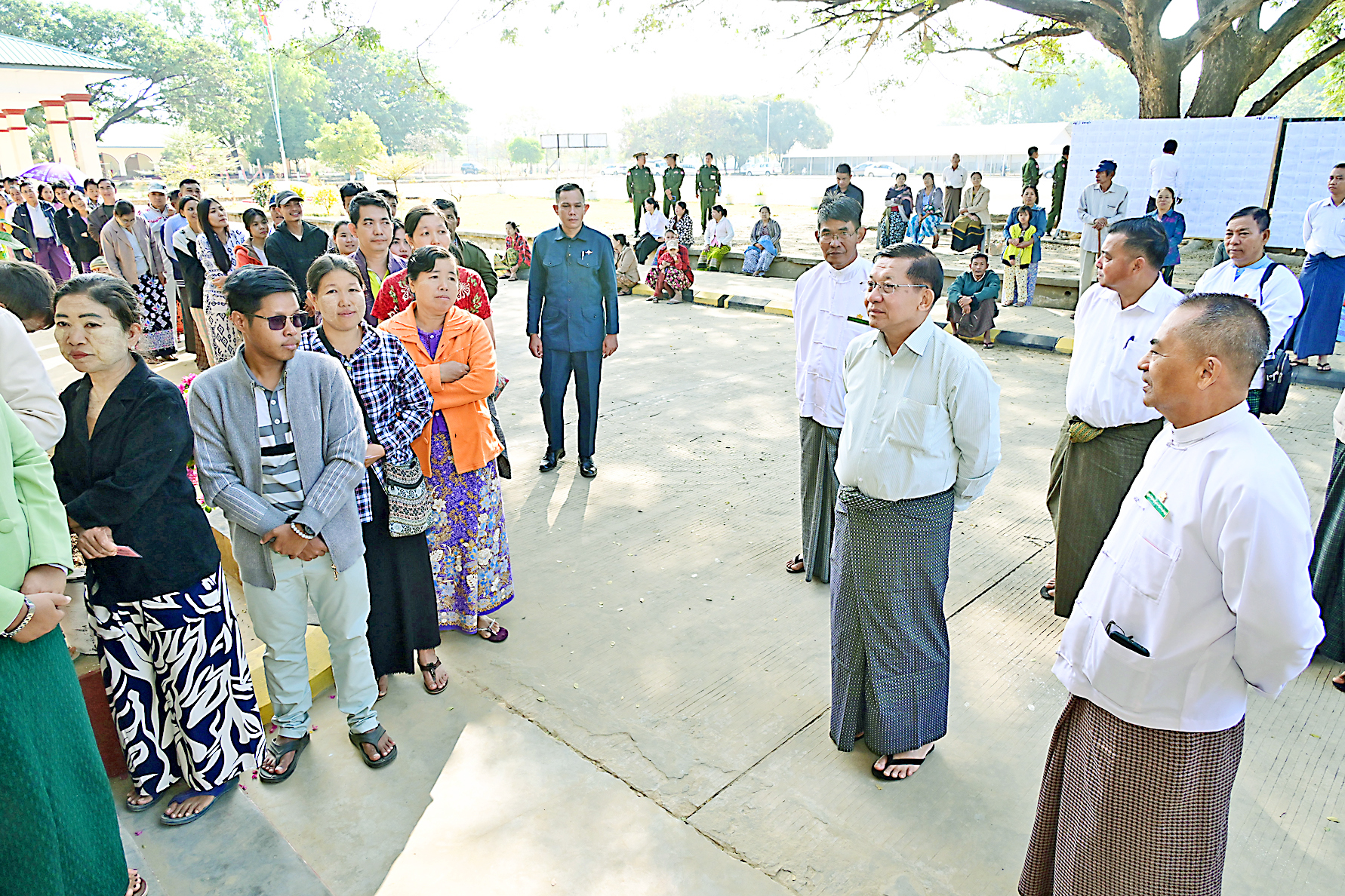Accompanied by the SSPC Secretary and members of the entourage, Acting President of the Republic of the Union of Myanmar, Chairman of State Security and Peace Commission,Senior General Min Aung Hlaing visited the people who were casting votes at the relevant polling stations in Zeyathiri, Pyinmana, Ottarathiri, and Pobbathiri townships, Nay Pyi Taw Council Area, and cordially conversed with them.