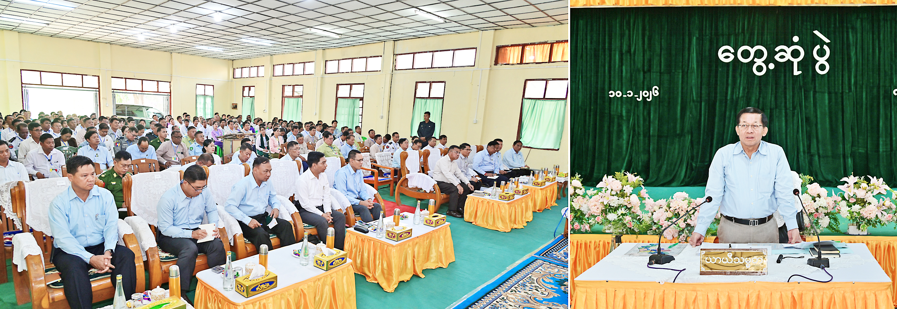 Also present at the meeting were SSPC Secretary General Ye Win Oo, union ministers, Ayeyawady Region Chief Minister U Tin Maung Win, senior military officers from the Office of the Commander-in-Chief, the South-West Command commander, deputy ministers, and local people.
