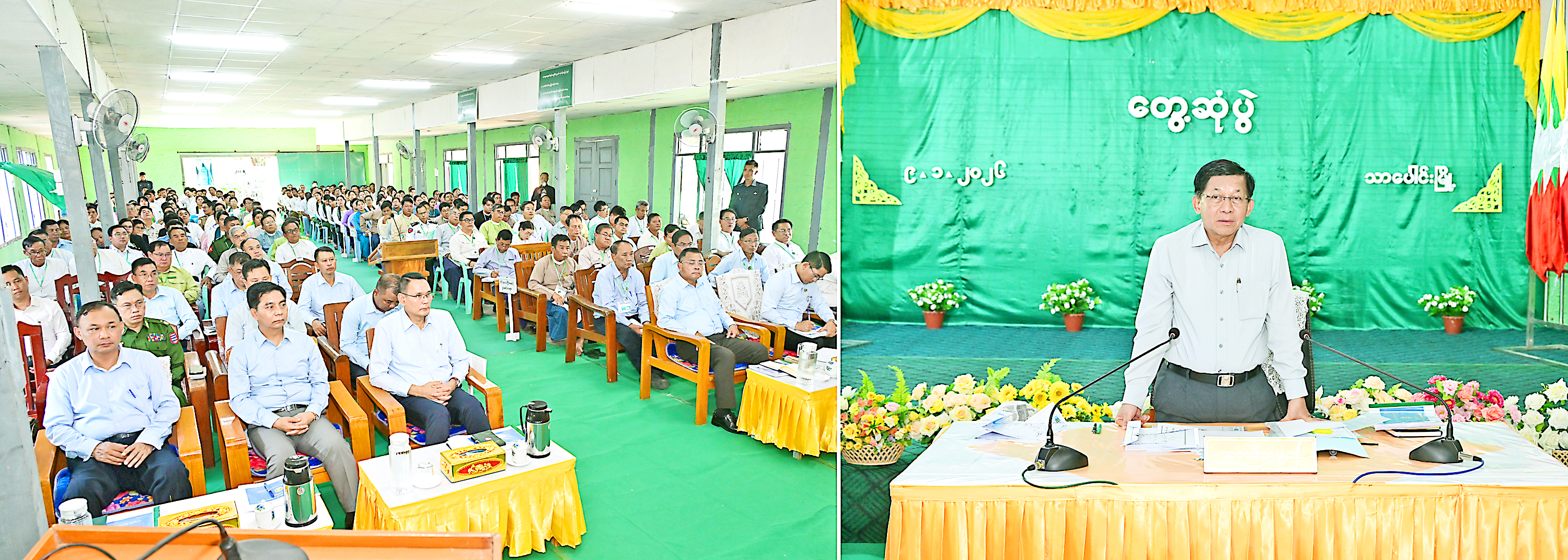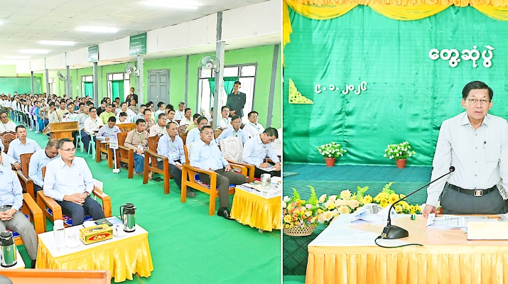 Union Ministers U Min Naung and Dr Charlie Than discussed opportunities for farmers to seek assistance from the Ministry of Agriculture, Livestock and Irrigation for promotion of agriculture and livestock sectors in the township, successful cultivation of Robesta coffee at the horticultural farms, distribution of quality strains of crops at fair prices, plans to disburse loans from the State Economic Development Fund to those wishing to expand livestock and fish production, needs to use farmlands under the prescribed laws and rules, and fulfillment of capitals, technoogy and inputs for development of MSME businesses.