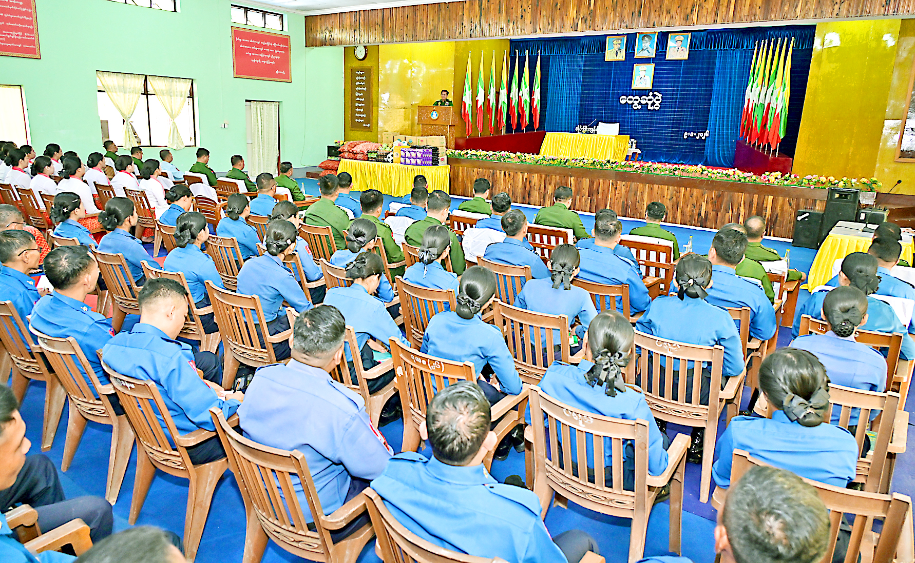 Regarding education, he noted that final examinations in basic education schools will be held soon. He urged officials and parents to work together to ensure that students can successfully sit for and pass these exams. As parents invest financially in their children’s schooling and students devote significant time to their studies, parents should encourage their children to achieve academic success. Tatmadaw also conducts summer courses such as manners and morals training, basic computer training, and other beneficial programs to ensure that students from military families utilize their summer holidays effectively. Furthermore, students from military families who pass the matriculation examination with honors are being sent on international study tours. Just as the State and Tatmadaw are prioritizing and promoting education, officers and other ranks must also encourage and support their children to achieve academic excellence.