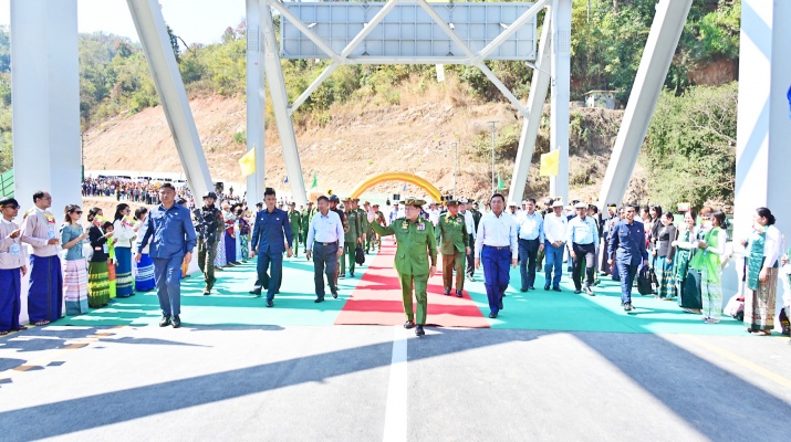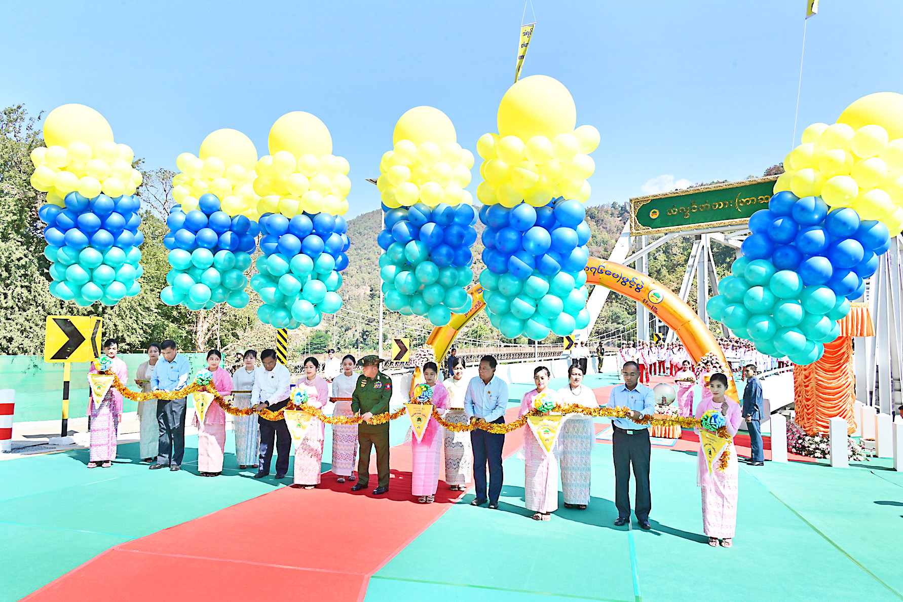 At the auspicious time, Secretary of the commission General Ye Win Oo and union ministers Dr Charlie Than, Dr Myo Thein Kyaw, U Myo Thant and Chief Minister of Shan State U Aung Aung formally opened the bridge by cutting a ribbon.