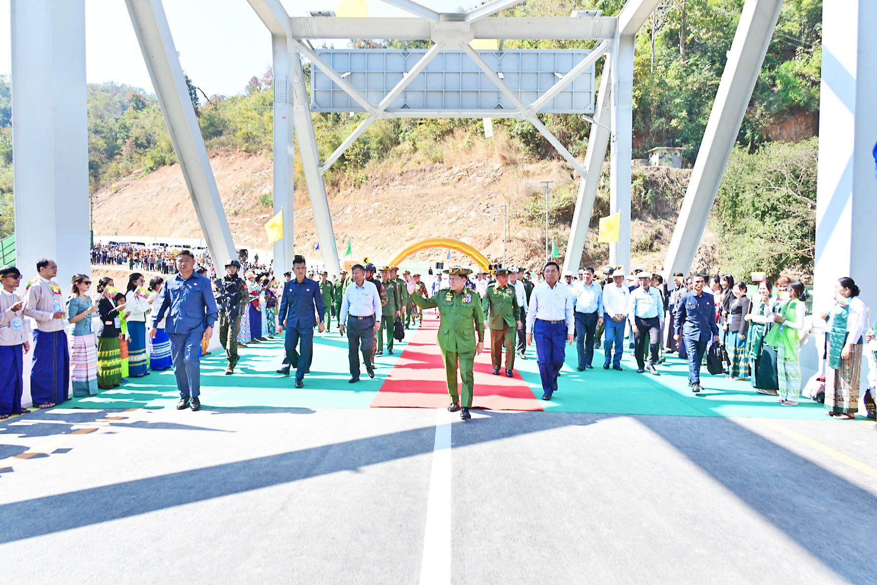 The opening ceremony of Thanlwin Bridge (Tahsan) was held at the bridge near Tahsan Village in Mongpan Township, Shan State (South) this morning and Acting President of the Republic of the Union of Myanmar, Chairman of the State Security and Peace Commission, Senior General Min Aung Hlaing formally opened the bridge.