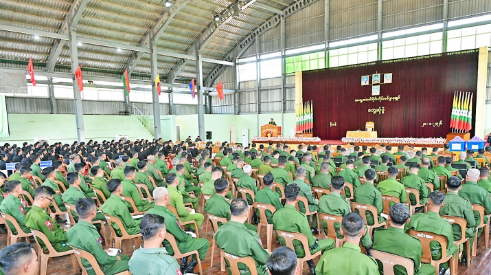 At the meeting hall of the command HQ, Commander Maj-Gen Soe Myat Htut reported on points of the military command and its military operations and measures taken for area safety, domination and organization, anti-online scam operations, drug seizures and counternarcotic operations, progress in destroying of poppy fields, anti-illicit trade operations, provision of public healthcare, manageable farming of the command and distribution of fish, meat and eggs to officers, other ranks and families and local people at fair prices, ongoing welfare undertakings, suc-cessful holding of the phases-1 and 2 of the 2025 multi-party democracy general election and preparations for the success of the phase- 3 at the designated townships.