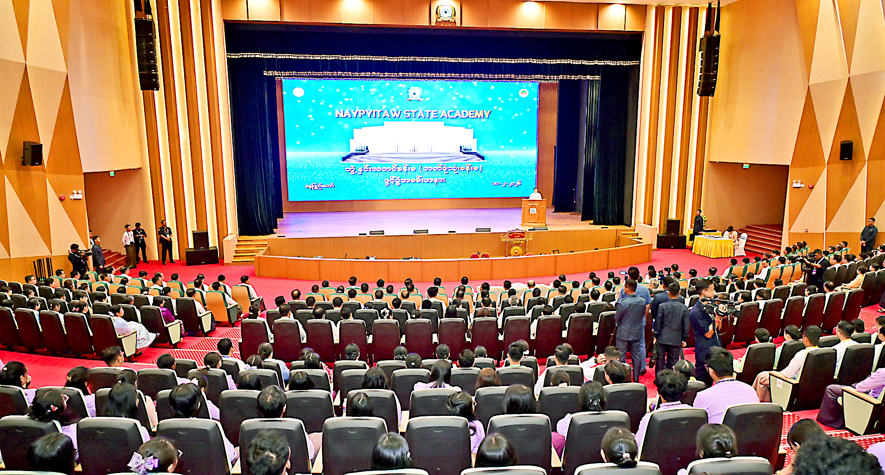 He stated that the Convocation Hall (multipurpose hall) of the Naypyitaw State Academy, which produces fine human resources—graduates who are endowed with knowledge, skills, and noble hearts—was ceremoniously opened today.
