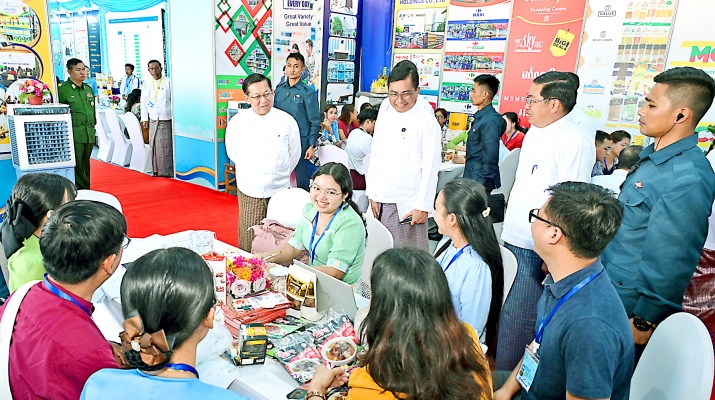 The Senior General warmly expressed delight that the Naypyitaw State Academy’s Convocation Hall has been opened in such a grand and vibrant manner with exhibitions and festivities, and voiced their confident hope that the graduates who will emerge year after year from this convocation precinct will become worthy and capable citizens on whom the State can rely and who can shoulder responsibilities for the benefit of the nation and its people. The Senior General also expressed his earnest wish that this Convocation Hall will continue to produce outstanding and well-rounded intellectuals—talented and virtuous scholars endowed with comprehensive knowledge and skills, as well as strength of character—who can help build a better future society for Myanmar and enable the country to stand shoulder to shoulder with the world.