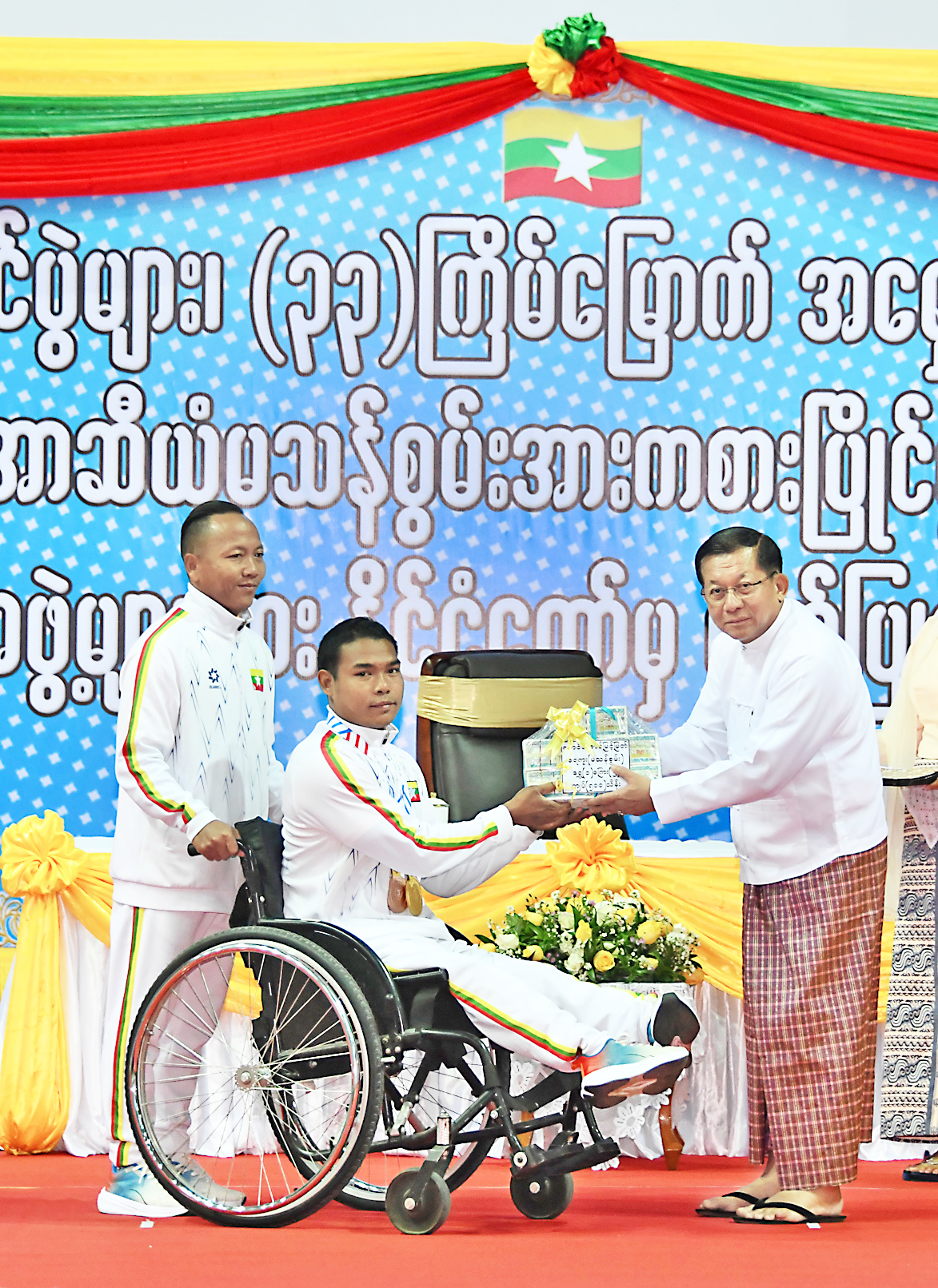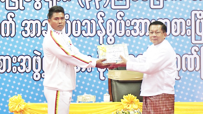 Also present at the ceremony were Member of the commission Prime Minister U Nyo Saw, Commission Secretary General Ye Win Oo, members of the commission, union ministers and union-level officials, senior military officers from the Office of the Commander-in-Chief, the commander of Nay Pyi Taw Command, deputy ministers, chairmen and vice chairmen of Myanmar sport federation, guests, athletes who brought honour to the country, their managers, coaches and officials.