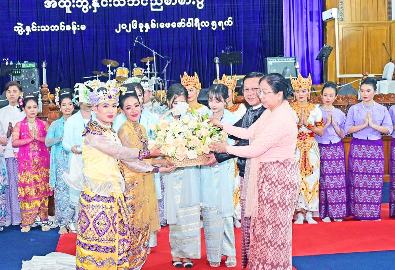 Present were Senior General Min Aung Hlaing and wife, Daw Kyu Kyu Hla, SSPC Secretary General Ye Win Oo and wife, SSPC members and wives, union ministers and wives, the Yangon Region Chief Minister, senior military officers from the Office of the Commander-in-Chief and wives, the Yangon Command commander, deputy ministers, the Yangon University rector, specially invited rectors of international universities, honorary professors, professors, honoured guests and officials.
