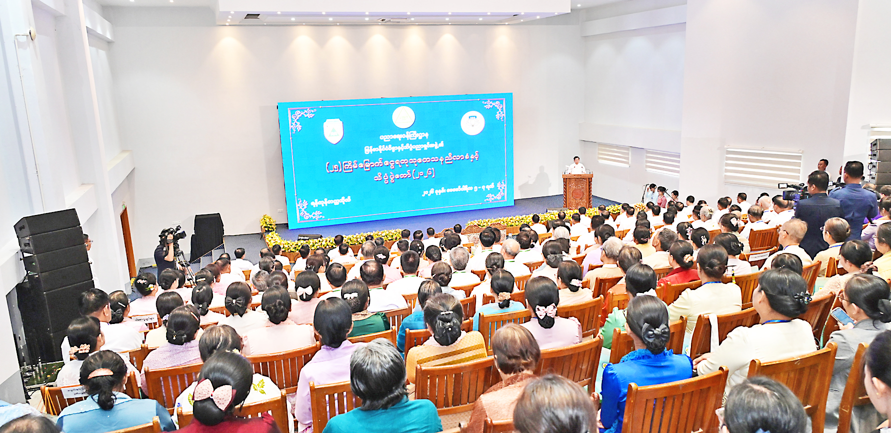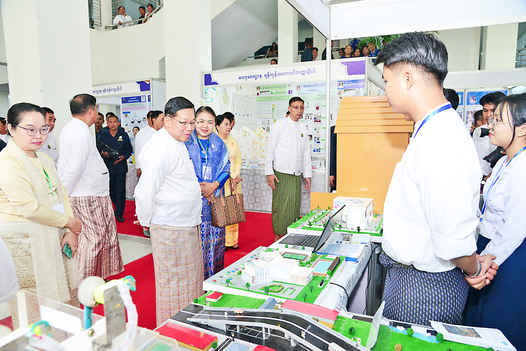 Also in attendance were SSPC member and Prime Minister U Nyo Saw, SSPC Secretary General Ye Win Oo, SSPC members, Union ministers, the Yangon Region Chief Minister, senior military officers from the Office of the Commander-in-Chief, the Yangon Command commander, deputy ministers, the Rector of Yangon University, rectors from invited inter-national universities, honorary professors, professors, senior lecturers, Tatmadaw officers holding Doctor of Science degrees, local and foreign researchers, invited guests, and officials.