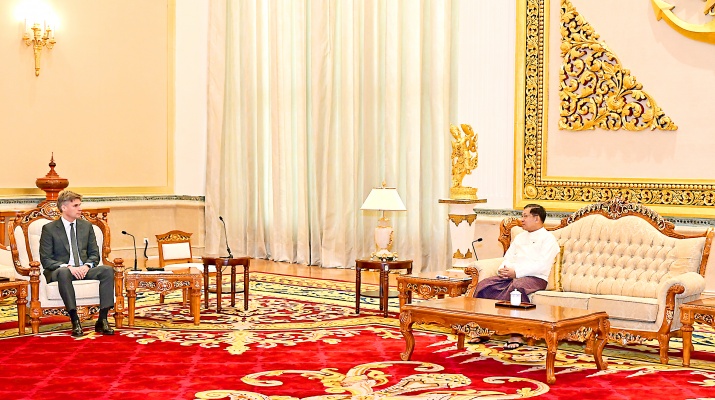 Acting President of the Re-public of the Union of Myanmar, Chairman of the State Security and Peace Commission, Senior General Min Aung Hlaing received a delegation led by State Space Corporation “Roscosmos” Director General Mr. Dmitry V. Bakanov of the Russian Federation at the parlour of Zeyathiri Villa here this morning.