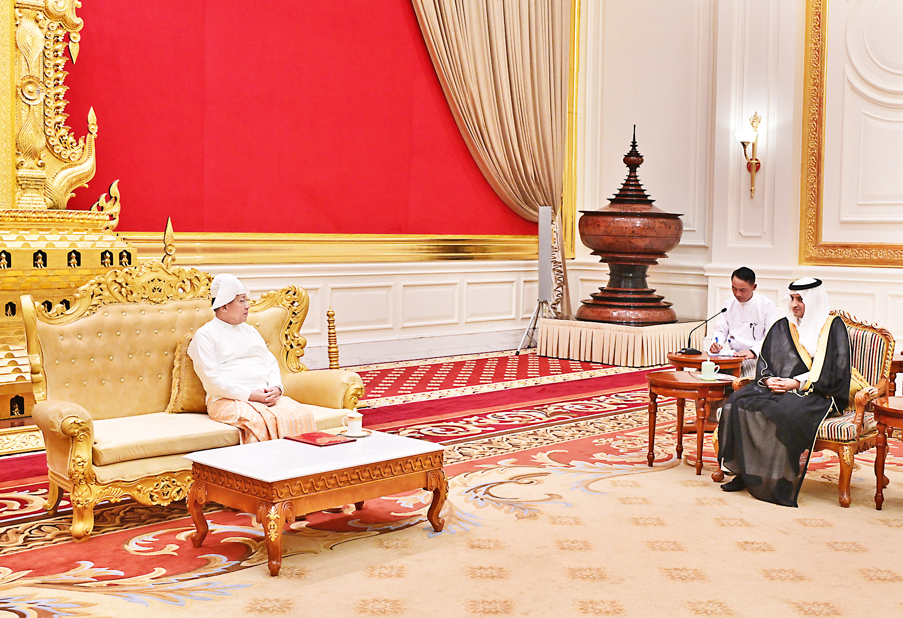 They cordially discussed long-lasting diplomatic relations between Myanmar and Saudi Arabia, further strenthening friendship and cooperation, potentials for promotion of bilateal relations between the two countries, the situation on enhancement of investment and trade between both countries, successful holding of the free and fair election in Myanmar, convening the Hluttaw in the near future, and efforts to further promote bilateral cooperation between the two countries.