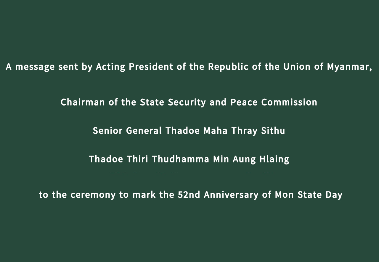 A message sent by Acting President of the Republic of the Union of Myanmar, Chairman of the State Security and Peace Commission Senior General Thadoe Maha Thray Sithu Thadoe Thiri Thudhamma Min Aung Hlaing to the ceremony to mark the 52nd Anniversary of Mon State Day