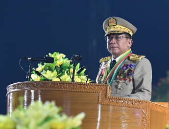 Senior General Min Aung Hlaing and wife Daw Kyu Kyu Hla presented Buddha images made of various flowers to the local ethnic people, the Bibles to Christians and packets of fried noodles and cakes to locals, and Union Minister for Border Affairs Lt-Gen Ye Aung, Admiral Tin Aung San, General Maung Maung Kyaw and senior military officers, foodstuffs such as eggs, instant noodles and dried fish to them. Townselders and local people accepted the gifts. Then, the Senior General, wife and party cordially greeted the local people and had documentary photos taken together with them.