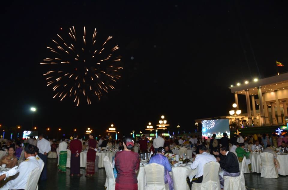 Commander-in-Chief of Defence Services Senior General Min Aung Hlaing and wife Daw Kyu Kyu Hla attended the reception and dinner in commemoration of the 73rd Anniversary Armed Forces Day in 2018 held on the lawns of Zeyathiri villa in Nay Pyi Taw this evening. To mark the 73rd Anniversary Armed Forces Day, fireworks were set off from Armed Forces Day parade ground and Bayintnaung villa at the beginning of the dinner.