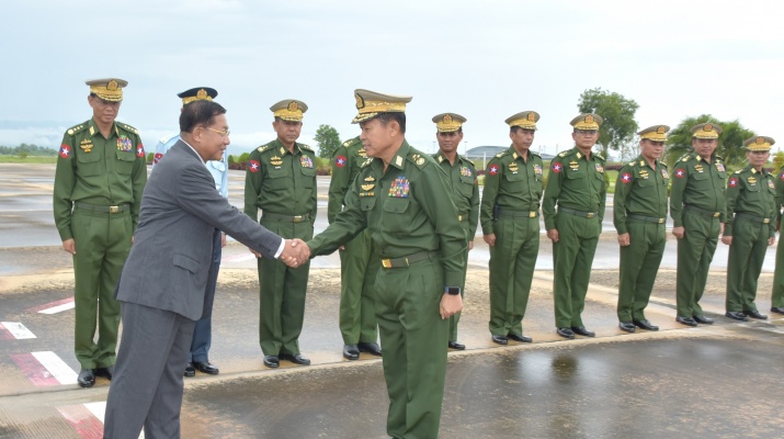 The Senior General is accompanied by his wife Daw Kyu Kyu Hla,Lt-Gen Than Tun Oo and senior military officers from the Office of the Commander-in-Chief (Army),Triangle Region Command Commander Maj-Gen Khin Hlaing and officials as delegation members.