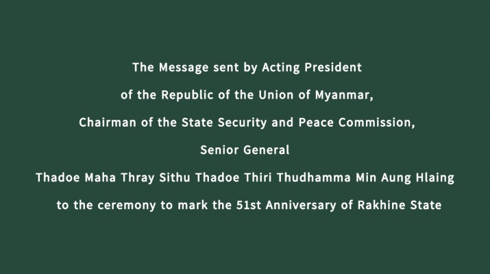 The Message sent by Acting President of the Republic of the Union of Myanmar, Chairman of the State Security and Peace Commission, Senior General Thadoe Maha Thray Sithu Thadoe Thiri Thudhamma Min Aung Hlaing to the ceremony to mark the 51st Anniversary of Rakhine State