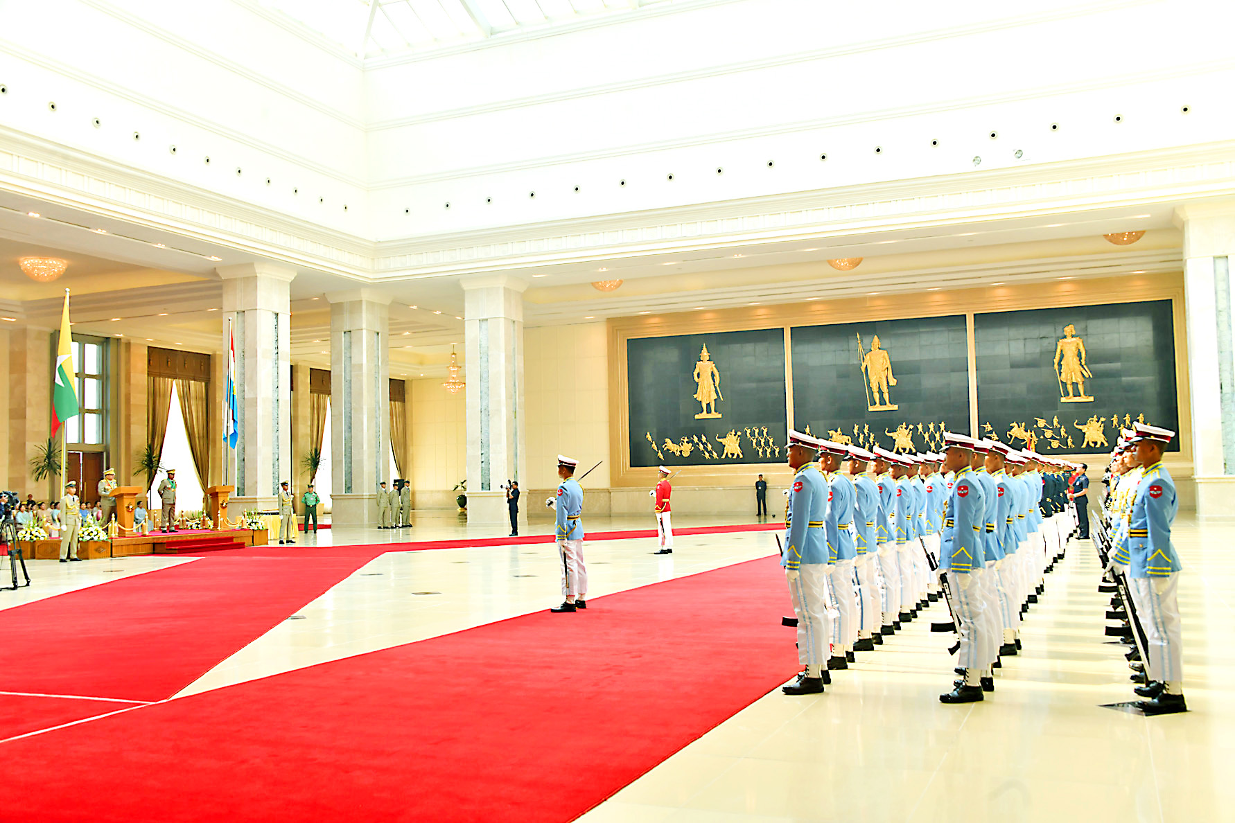 Chairman of State Administration Council Prime Minister Senior General Min Aung Hlaing accepts Credentials from LPDR Ambassador to Myanmar