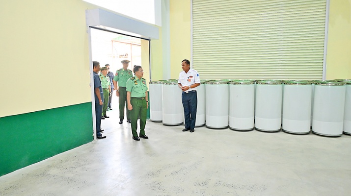 SAC Chairman Commander-in-Chief of Defence Services Senior General Min Aung Hlaing inspects Tatmadaw Textile Factory (Meiktila)