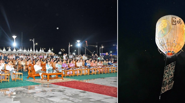Hot air balloon releasing ceremony of 2025 Tazaungdaing Festival of Maravijaya Buddha Image held